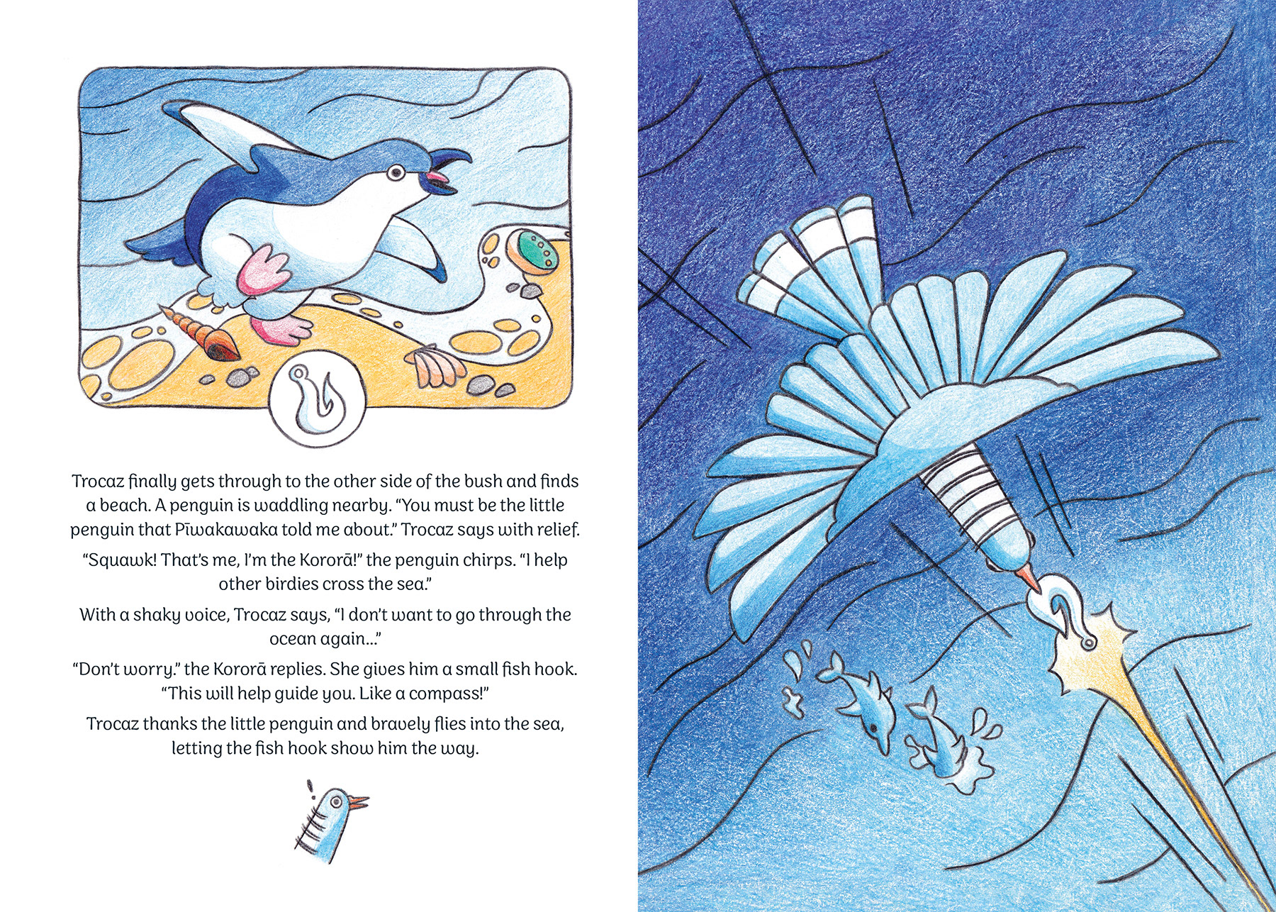 I illustrated the story using coloured pencils on paper, taking inspiration from Aotearoa’s unique wildlife and flora for the design of the characters and environments. The process involved multiple stages of storyboarding, character design, and composition planning to create a playful and engaging visual style aimed at children. This project combined my love for illustration, storytelling, and my own past experience of finding home in a new country.